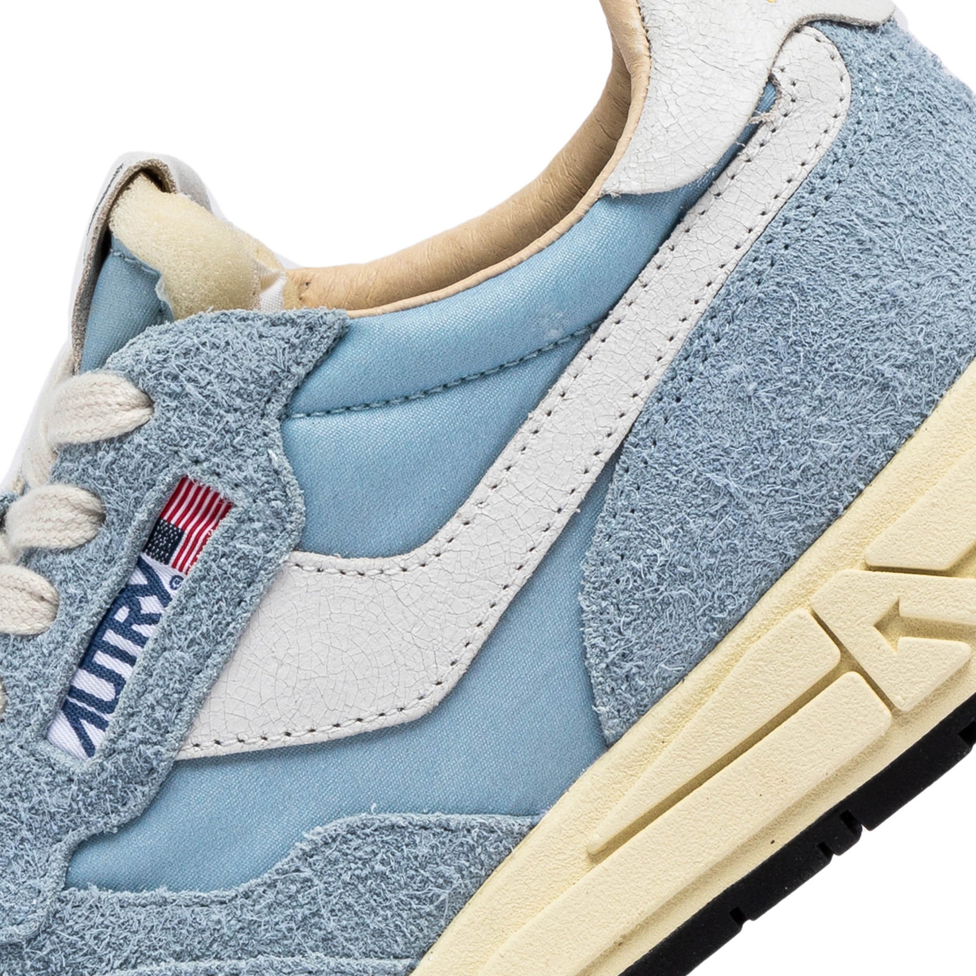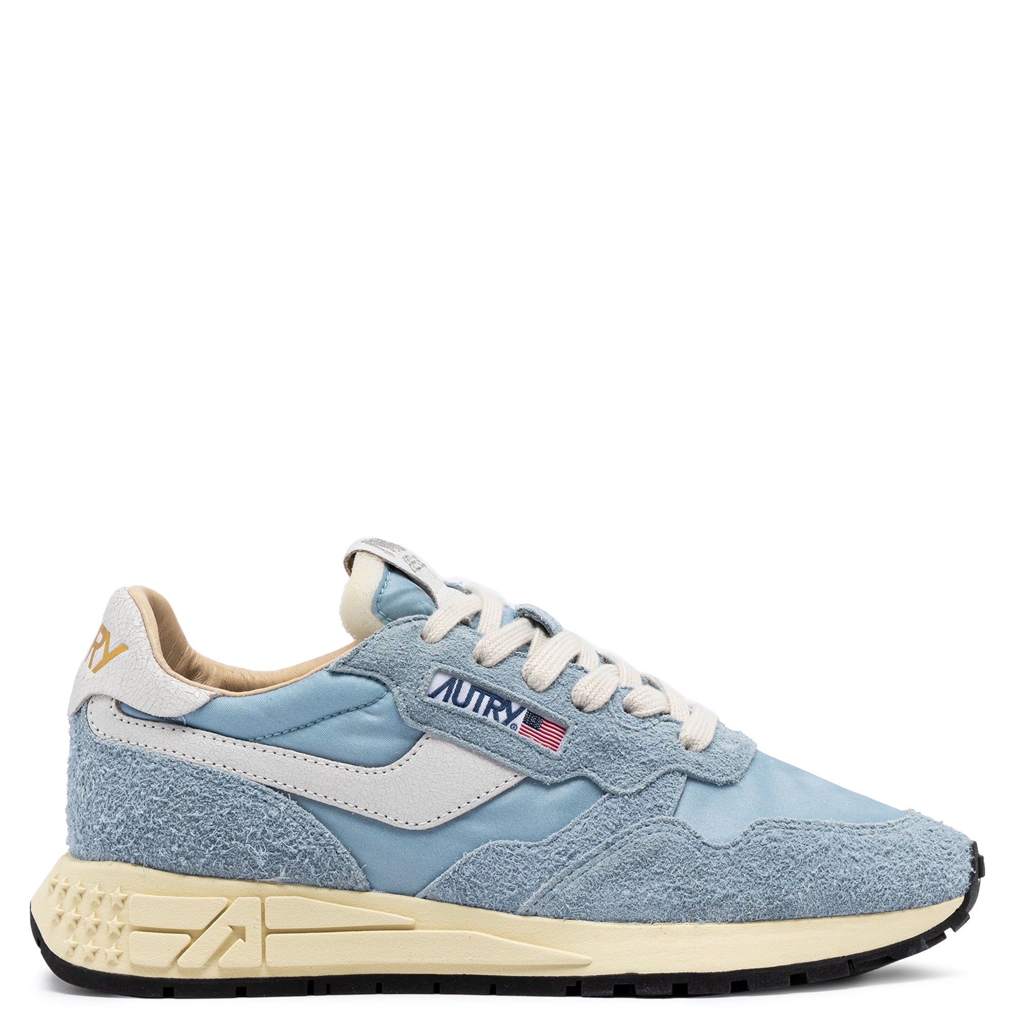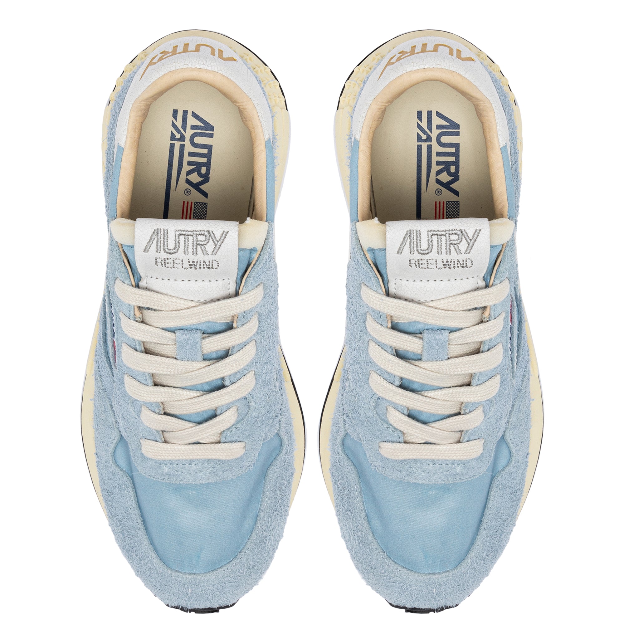 Innovativ, leicht und extrem flexibel: Reelwind ist der Sneaker von Autry, der von der Welt des Laufsports inspiriert wurde. Das Modell für Frauen ist aus einem Mix aus Wildleder und Nylon in Hellblau mit Applikationen aus Craquelé-Leder in Weiß an den Seiten gefertigt. Entworfen für einen dynamischen Lebensstil, zeichnet er sich durch eine schlanke Silhouette und eine leistungsfähige Verarbeitung aus, die maximale Bewegungsfreiheit bietet. Die Gummisohle mit Profil im Relief ist durch das Sternen-Motiv personalisiert und dem A-Pfiel welcher das Logo auf grafische und moderne Weise neu interpretiert. EIGENSCHAFTEN: Obermaterial aus Leder, Nylon und Wildleder. Flache Schnürsenkel aus Baumwolle. Label auf der Zunge aufgenäht. Gepolsterter Schuhkragen. Futter aus Leder, Nylon und Baumwollfrottee. Innensohle aus Leder um 2 cm erhöht. Laufsohle. Höhe der Sohle: 2.5-3.5 cm. Personalisierte Clutch Bag aus Stoff. ZUSAMMENSETZUNG: Obermaterial: 60% Nylon, 40% Leder Futter: 40% Leder, 50% Baumwollfrottee, 10% Nylon Sohle: 60% Phylon, 40% Gummi
